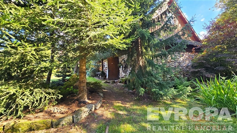 Exteriér domu je vybaven terasou a zahrádkou, která je ideální pro odpočinek, zábavu nebo prostě pro spojení s přírodou. Struktura a poloha chalupy nabízí dostatek venkovního prostoru pro různé aktivity. Sklep zde také nalezneme, který poskytuje praktický úložný prostor.
