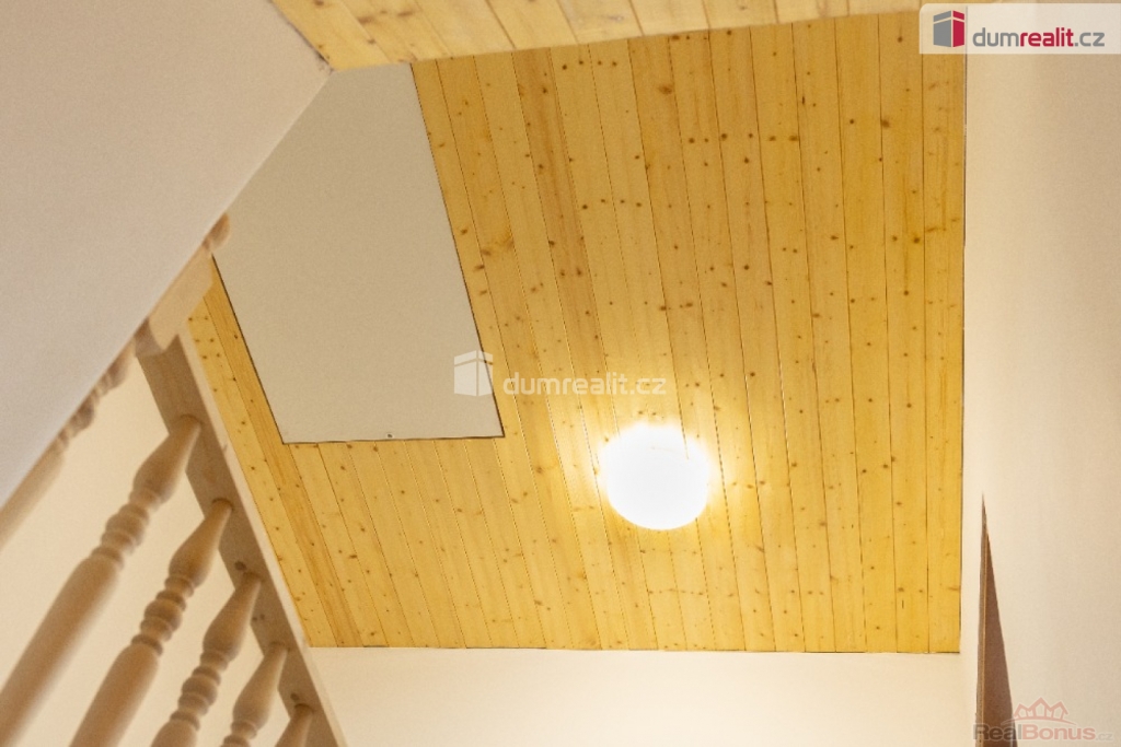 Dispozice domu 5+1 nabízí prostorné obytné místnosti ideální pro rodinné bydlení. K domu je začleněna garáž a technická místnost a prostorná půda, které vám poskytnou dostatek úložného prostoru, případně možnost rozšíření obytného prostoru. Dvoupodlažní dům se sedlovou střechou je v osobním vlastnictví a je rekonstruován. Vytápění domu je zajištěno krbovými kamny a elektrokotlem. Plyn je na hranici pozemku. Fasáda je zateplená a obložená dřevem V 1.NP jsou dva pokoje. Odpady jsou řešeny ČOV vlastněnou z 1/4. Koupelnu a větší technickou místnost je možno přizpůsobit podle potřeby. Je zde rovněž vstup do garáže s možností jejího využití jako dílna, případně po úpravě jako další velký pokoj. Vstup na zahradu je přes zastřešenou terasu a vjezd na ni je z opačné strany zahrady. Ve 2.NP jsou 3 pokoje, kuchyň a koupelna. Z chodby je vstup na prostornou pochůzí půdu po sklopných schodech. Na terase si můžete vychutnat krásné klidné chvíle s výhledem do zahrady a dále do zeleně s rodinou nebo přáteli.