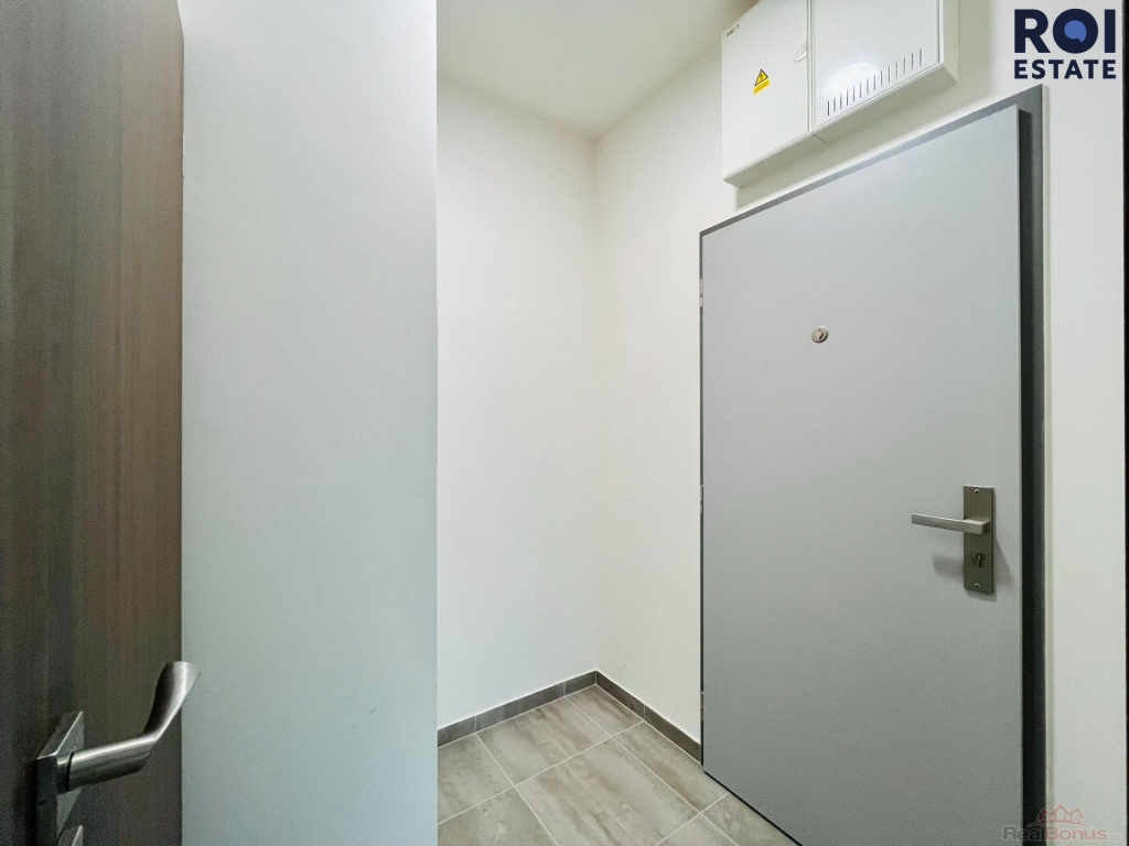 Při vstupu do bytu se ocitnete v menší předsíni, kde je stále prostor na botník či menší šatní skříň. Před námi se objeví dvoje dveře, jedny nás provedou do pokoje s kuchyňským koutem, který je nevybavený, tudíž si vše můžete zařídit dle Vaší chuti a představ. Fantazii se tedy meze skutečně nekladou! Jediné, co tu na Vás čeká je kuchyňská linka včetně indukční desky, trouby a skutečně velké pracovní plochy, jelikož bylo z prostoru pro kuchyň vytěženo maximum. Prostor je velmi vzdušný a tak se Vám sem vleze skutečně vše, co potřebujete. Velkou přidanou hodnotou je také prostorný balkon, na kterém můžete odpočívat po náročném dnu a jediné co uslyšíte, je příroda.