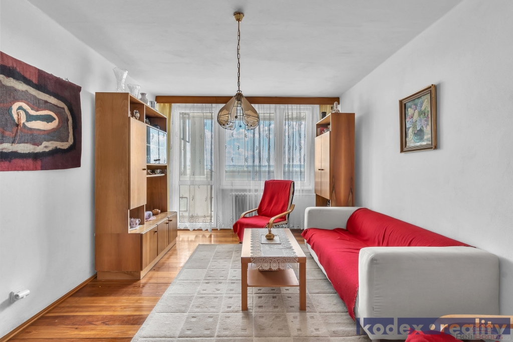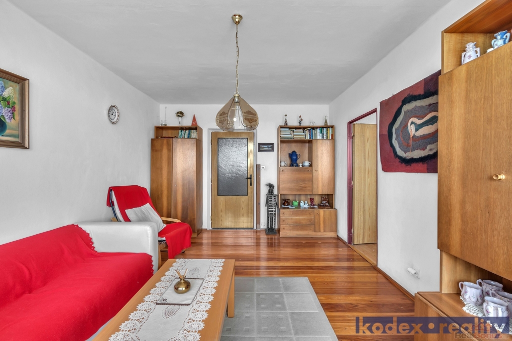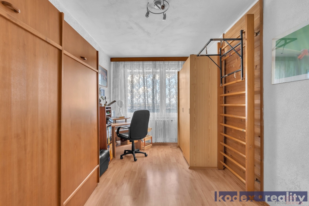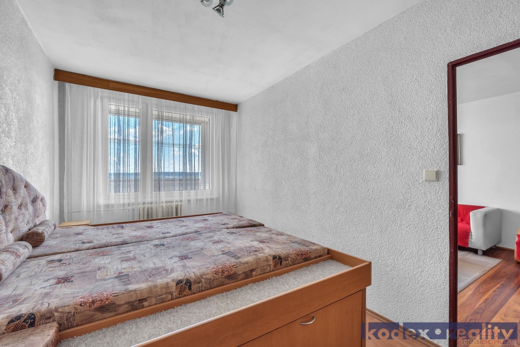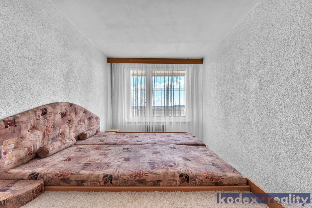 Dispozice: předsíň, koupelna s WC, kuchyň, komora, obývací pokoj se vstupem na lodžii, ložnice, dětský pokoj/pracovna a sklepní kóje na patře. Z bytu je krásný výhled. V místě naleznete veškerou občanskou vybavenost včetně MHD, MŠ, ZŠ apod.
