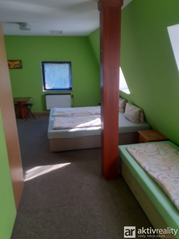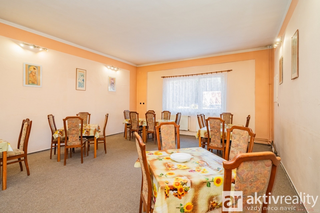 Dům je částečně podsklepený a v suterénu cca 70m2 se nachází kotelna, uhelna a sklad. Přízemí je o celkové ploše cca 265m2. V prvním poschodí najdete šest pokojů s vlastní koupelnou a WC a na druhém poschodí jsou další dva samostatné pokoje s koupelnou a WC .