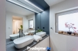 Koupelna je chytře členěná do čtyř částí ? najdete tu zděný sprchový kout, dvě umyvadla, toaletu a samostatnou místnost s volně stojící vanou. Pro lepší představu nahlédněte do 3D půdorysů v galerii.
