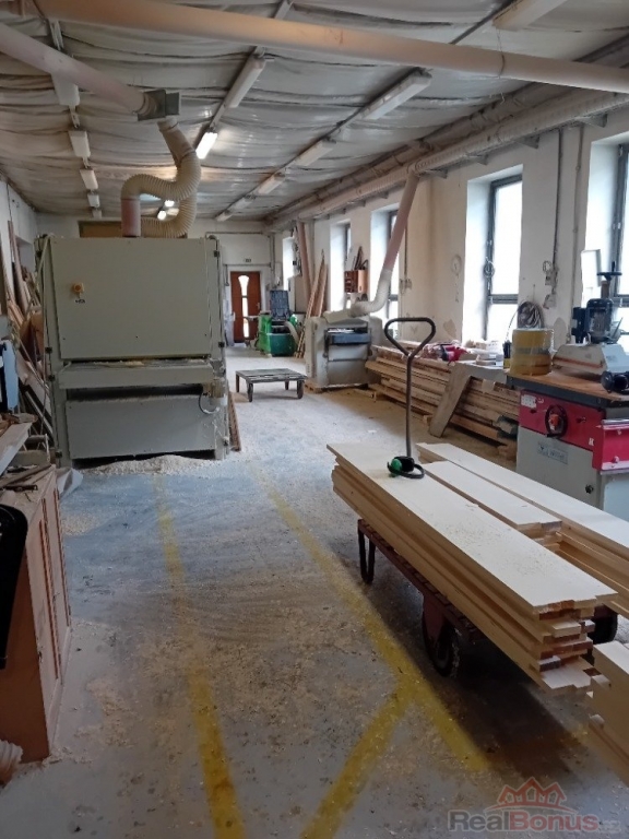 Víceúčelový výrobně skladovací areál je v současné době využíván převážně jako truhlářská dílna s dvěmi bytbyty 3+kk.