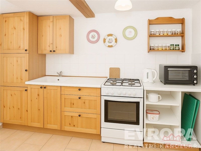Dispozice obytné části (67,6 m) zahrnuje obytnou kuchyň s obývacím prostorem, tři pokoje, koupelnu se sprchovým koutem a WC a prostornou chodbu. Atmosféru domu doplňuje menší sklípek (5,9 m), ideální pro uchování potravin či vína. Na obytnou část navazuje užitková plocha (71,9 m) stodola, dílna, sklady a zahradní místnost, které poskytují zázemí pro kutilství, zahradničení nebo uskladnění dřeva. Velkou předností je půda, vhodná k vestavbě dalšího obytného prostoru.