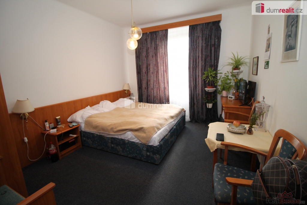 , Dumrealit.cz Vám zprostředkuje koupě krásné cihlové vily v Anglické ulici v centru Mariánských Lázní vhodné k provozování pensionu, hotelu, ubytovny či dlouhodobých a krátkodobých pronájmů. Pozemek obklopující dům o celkové rozloze 952 m nabízí útulnou zahradu jak před tak za domem, zastavěná plocha je 366 m. Vila prošla revitalizací fasády, jsou zde nová okna, v objektu je výtah. Celková plocha objektu je cca 1400 m s tím, že je zde celkem 24 apartmánů ve čtyřech podlažích plus půda. Každý pokoj má své sociální zařízení, koupelnu, toaletu. Na podlahách jsou koberce, pokoje jsou vybavené nábytkem. Na patře je vždy navíc samostatné WC, v přízemí pak je několik technických místností, kotelna, kuchyně, společná místnost. Do objektu jsou zavedeny inženýrské sítě včetně vodovodu, kanalizace, elektřiny a plynu. Vytápění je zajištěno skrze městskou teplárnu, tedy centrálně. Do domu vedou dva vchody, je zde terasa, několik balkonů. Parkování je možné jak na pozemku tak v ulici a na přilehlém parkovišti naproti objektu. Nemovitost je prosta jakýchkoli věcných břemen či právních omezení. V místě je krásný klid, dům obklopuje veřejná zeleň a městské parky. V Mariánských Lázních je veškerá občanská vybavenost včetně úřadů, bank, restaurací, obchodů, škol, jsou zde supermarkety LIDL, PENNY, TESCO, Kaufland, BILLA, DM, Planeo elektro, JYSK, super ZOO, TAKKO, KIK, Deichmann. Mariánské Lázně jsou úžasné místo pro život i odpočinek, jsou prošpikované sítí turistických, cyklistických a běžkařských tras. Sportovcům je k dispozici plavecký bazén, sportovní areál Viktorka, zimní stadion pro bruslaře, lyžařská sjezdovka s lanovkou, tenisové kurty, v létě je v provozu koupaliště Lido s písečnou pláží. Úžasné městské parky nabízí krásná zákoutí: Kolonádu se zpívající fontánou a přilehlý labutí park, Ferdinandův pramen, Lesní pramen, Rudolfův pramen, Medvědí pramen, Geologický park, obůrku Hvozd s daňky a jeleny. V dosahu do 25 km jsou přírodní rezervace a turistické cíle: rašeliniště a naučná stezka Kladská, přírodní rezervace Smraďoch a Vlček, státní zámek Bečov, státní zámek Kynžvart, hrad a krásné město Loket, klášter Teplá, blízké klimatické Lázně Kynžvart, Krakonoš, rozhledna Hamelika, nejvyšší vrchol Slavkovského lesa Lesný (983 m) kudy vede mezinárodní evropská dálková turistická trasa E3. Mariánské Lázně jsou na seznamu světového kulturního dědictví UNESCO, skýtají klid lázeňského města se zdravou vodou a čistým ovzduším. Mariánské Lázně se nacházejí v blízkosti německých hranic, tedy je vhodné pro ty, kteří tam hledají pracovní uplatnění. Cena zahrnuje provizi RK a veškerý právní servis. V případě potřeby zajištění financování Vám rádi doporučíme naše prověřené hypoteční specialisty. Ev. číslo: 652627. Energetický štítek: G (150 kWh/m2/rok).