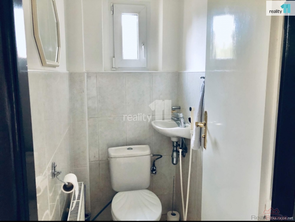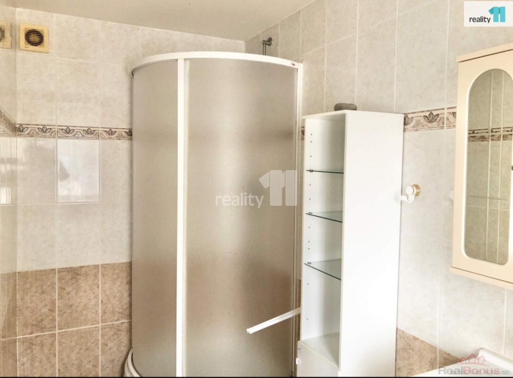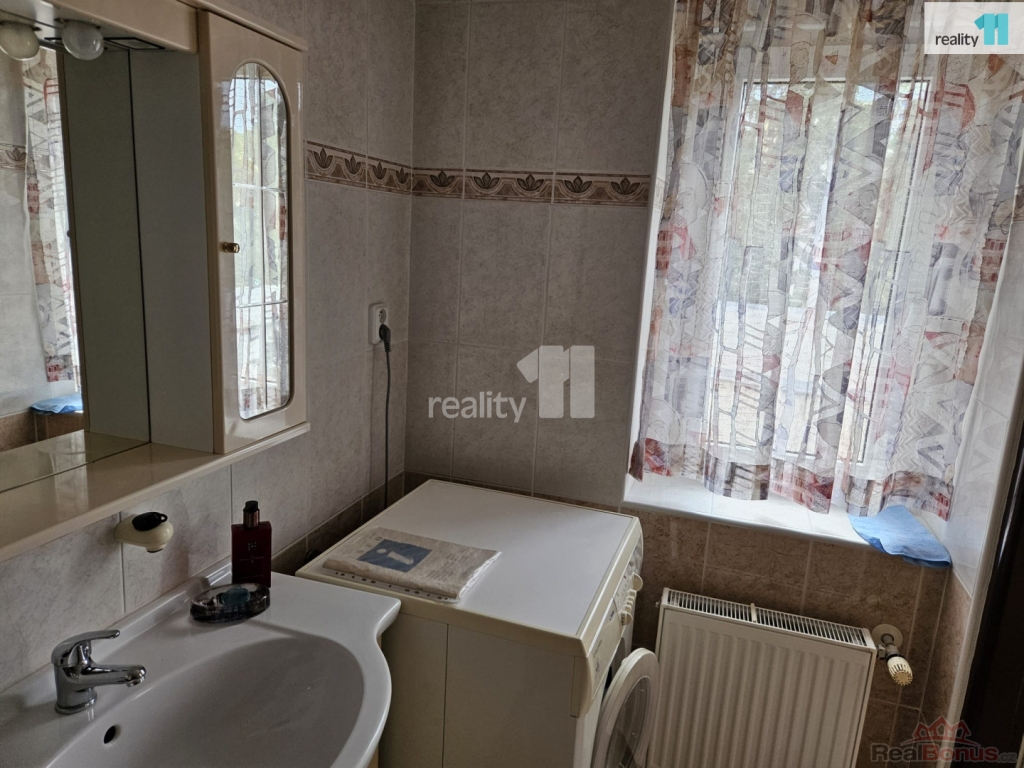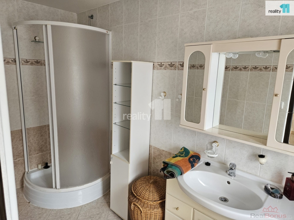 Koupelna se sprchovým koutem, pračka vč. sušičky, špajz vč. lednice/mrazáku. WC samostatné.
