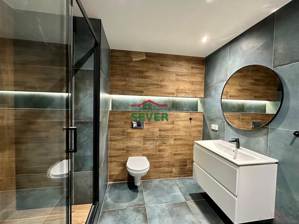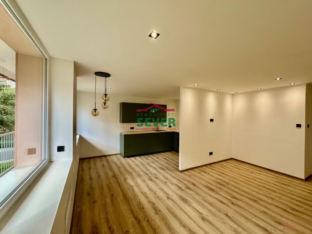 Nemovitosti SEVER vám zprostředkují prodej bytu s dispozicí 3+kk s lodžií v družstevním vlastnictví v Mostě, ul. K. J. Erbena. Byt s celkovou plochou 77m2 se nachází ve druhém patře panelového domu s výtahem, situovaný v klidné části města. Dispozice bytu je po kompletní rekonstrukci a skládá se z předsíně, společně řešené koupelny s toaletou, šatny, samostatných vstupů do obývacího pokoje s lodžií propojeného kuchyňskou částí s jídelním prostorem a dvou ložnic. Rekonstrukce bytu zahrnuje elektroinstalaci, štuky, plovoucí podlahy, snížené stropy s bodovým osvětlením, sociální zařízení ve zděném jádru s prostorným sprchovým koutem v moderním keramickém obkladu, kuchyňskou linku s vestavěnými spotřebiči, interiérové dveře s obložkami, bezpečnostní vstupní dveře, rozvody vody a odpadů. K bytu náleží komora na patře a sklepní kóje. Byt je ihned volný k užívání. Dům, ve kterém se byt nalézá, je po revitalizaci. V okolí domu je dostatek zeleně. Veškerá občanská vybavenost k dispozici v docházkové vzdálenosti. V případě zájmu zajistíme optimální variantu financování za zvýhodněných podmínek na tento byt.