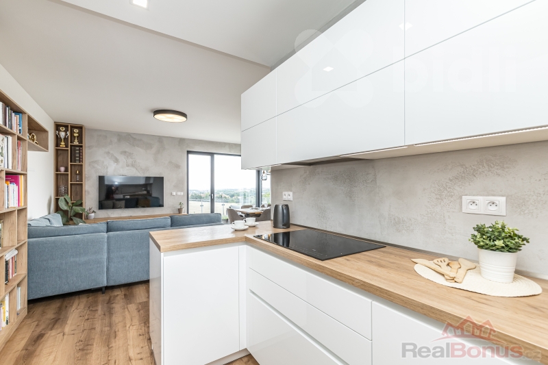 Byt se nachází v posledním patře nízkopodlažní novostavby a je zařízený na míru. Vyniká vysokou kvalitou provedení, promyšlenou dispozicí a důrazem na detail. Oceníte velkoformátová okna v každé místnosti, která zajišťují dostatek denního světla, a zároveň elektricky ovládané předokenní žaluzie, které poskytnou naprosté soukromí i tepelný komfort. Celý byt je plně klimatizovaný. Mimochodem na terasu je vstup ze všech pokojů.