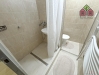 Koupelnové jádro je dosud umakartové, prošlo však částečnou rekonstrukcí. Z jedné strany bylo povrchově upraveno a obloženo příjemným keramickým obkladem. Místo malé sprchové vaničky byl vybudován velmi prostorný sprchový kout a umístěno je i umyvadlo. Toaleta je společná, částečně oddělená příčkou. Bytová jednotka má plastová okna a na podlaze je položena dlažba nebo kvalitní linoleum. K dispozici je zděný sklep.