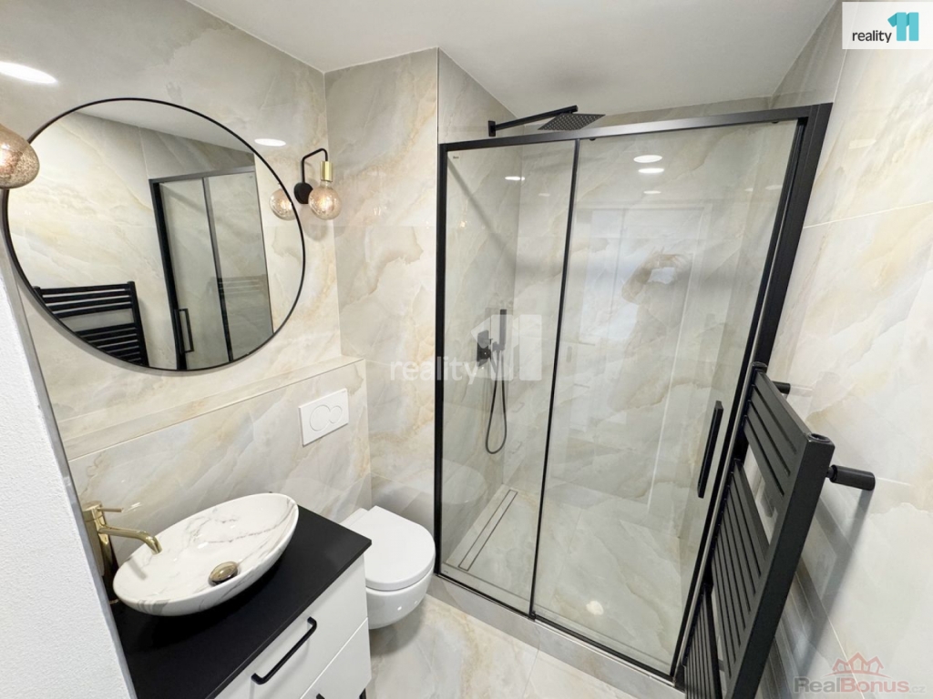 Byt prošel kompletní rekonstrukcí, kdy došlo k velmi praktickému využití prostoru. Při vstupu do bytu najdeme po pravé straně vstup do koupelny se sprchovým koutem a toaletou, dále kuchyni do L (lednice, myčka, pračka, sklokeramická deska, trouba), s menší rozkládací pohovkou. Z kuchyně se pak vchází do ložnice, která je prázdná (postel zde již není). V ložnici je dostatek prostoru i na případný pracovní kout. Část ložnice byla přepažena, čímž vznikla praktická šatna, do které pohodlně schováte všechno oblečení. Byt je v posledním patře, sousedi velmi klidní.