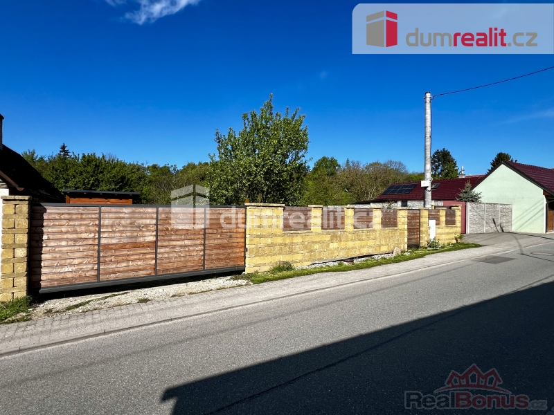 Velkou výhodou je, že pozemek je kompletně oplocen. Z zadní části tvoří plot betonové monolity a z uliční části je zbudován plot se vstupní brankou a motorizovanou bránou na dálkové ovládání.