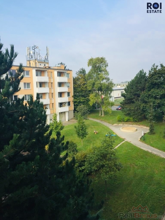 Překvapí Vás prostorný balkón s výhledem mezi stromy a přilehlé dětské hřiště.