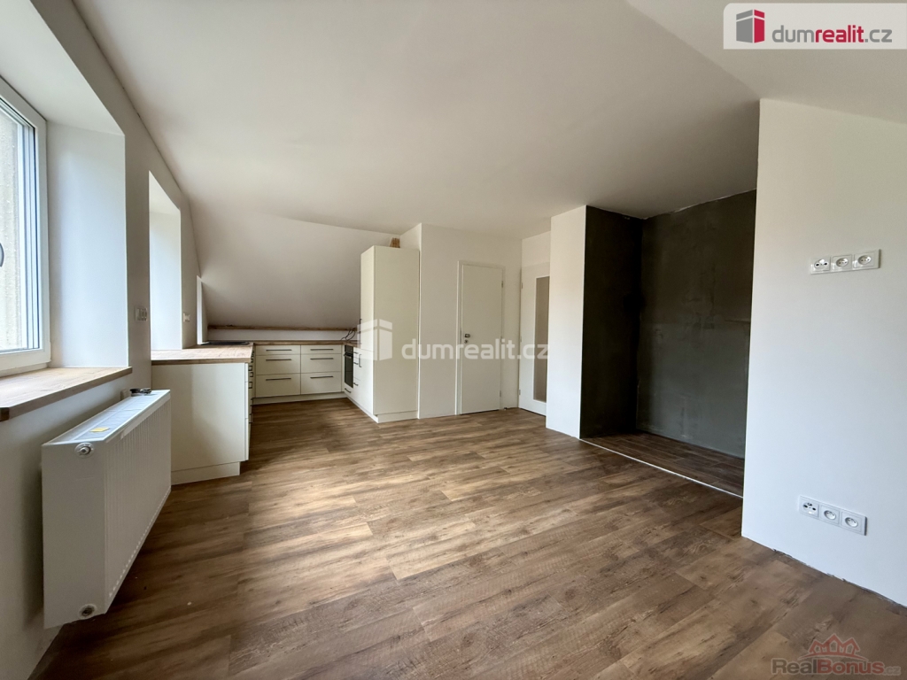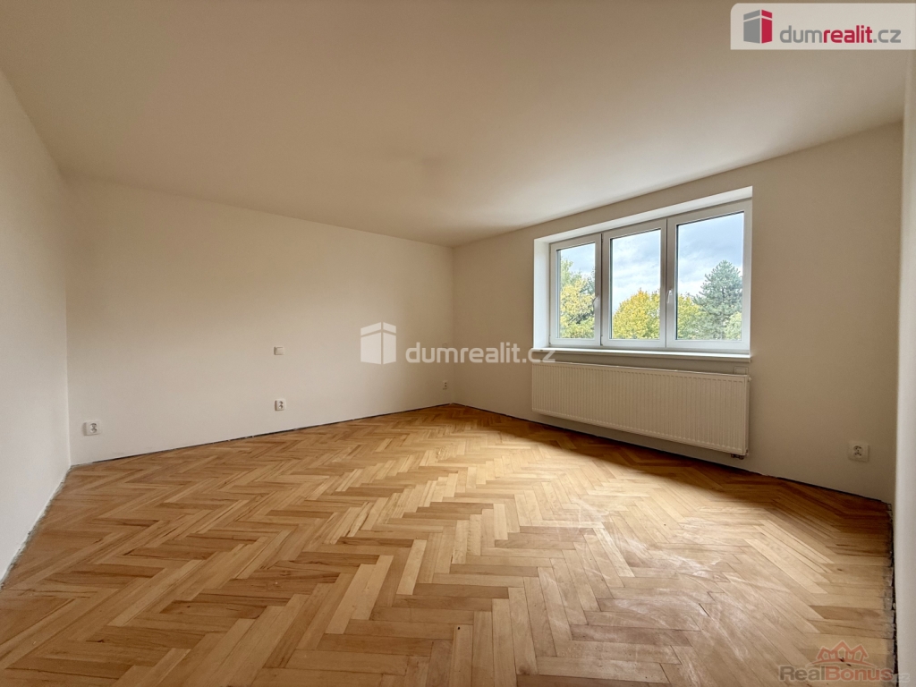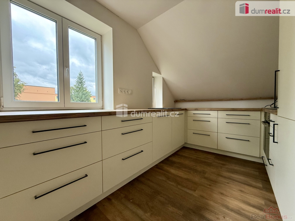 Nové sádrokartonové stropy včetně zateplení. Nové štukové omítky a nově vymalováno.