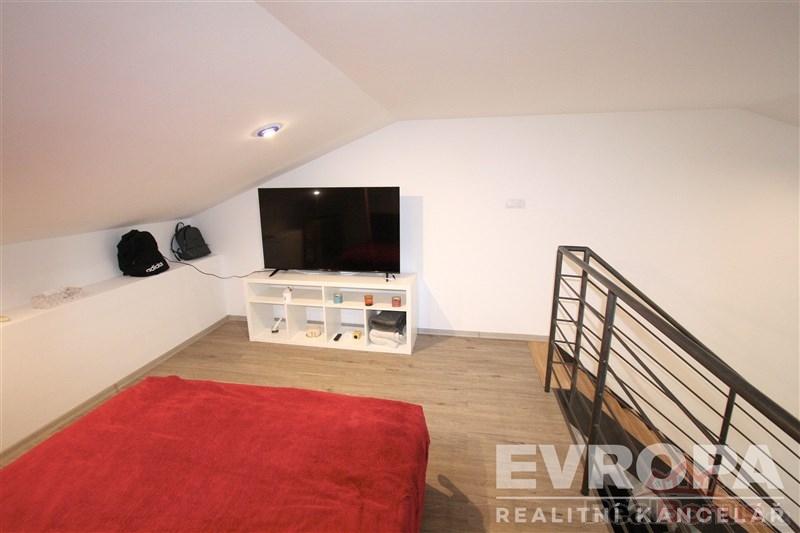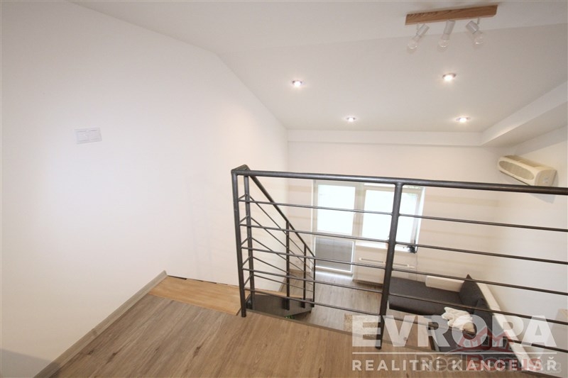 Nabízíme k pronájmu moderní zařízený byt mezonet, dispozice 2+kk, plocha 42m2, po kompletní rekonstrukci 2021, dům z roku 2008. Nachází se ve 2NP. nízkopodlažního domu. Byt se skládá z předsíně s vestavěnou skříní, prostorného a světlého obývacího pokoje, s prostorem odděleným na jídelní a kuchyňský kout a obývací část, kuchyňská linka se zabudovanými elektrickými spotřebiči elektrická trouba, sklokeramická varná deska, digestoř. Ve vrchním patře je ložnice (galerie) prostor na spaní, kde je umístěné manželské dvoulůžko. Koupelna se sprchovým koutem, toaletou a pračkou. Na podlaze plovoucí podlaha a dlažba. Vytápění a ohřev teplé vody centrálním plynovým kotlem, v ceně je připojení k internetu přes WIFI. Nájemné je ve výši 21000,Kč + 4000,Kč kompletní paušální poplatky za služby a energie. Jedná se o krásný, světlý byt, který zaručeně nadchne zájemce, který má rád atypické a moderní bydlení. Vzhledem k otevřené dispozici bytu je byt vhodný a pronajímatel preferuje ideálně 1 osobu (max dvě osoby v případě páru) a bez domácích zvířat. Dům je pěší dostupností na MHD a v lokalitě je kompletní občanská vybavenost. K nastěhování volný od 15. října 2025.