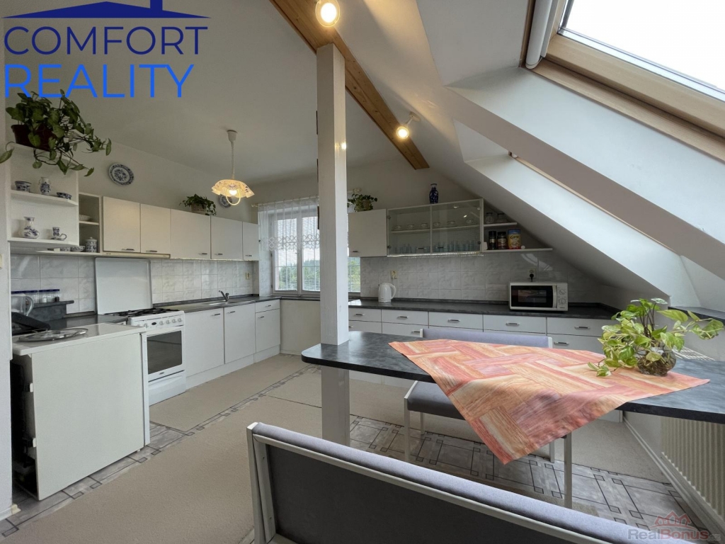 Dům jako samotný je umístěn na okraji obce, výstavba proběhla v roce 1947, kdy horní patro bylo přistavěno v letech 2001 2004 (je tak relativně mladé) a náleží k němu rovinatý pozemek o celkové výměře 1885 m2,na kterém je mimo samotný dům ještě umístěna hospodářská budova, která je z části využívána jako garáž, z části je dílnou a zázemím pro domácí zvířata. Pozemek je situován do klidové zóny, je vkusně udržován a ať už chcete pěstovat zeleninu na zahradě, posedět s přáteli či si s dětmi zahrát fotbal, máte zde prostor pro všechny a pro vše. Samotný dům je dispozičně řešen na patro s dispozicí 6+2 (2x 3+1) s tím, že přízemí je se zádveřím, třemi pokoji, kuchyni, koupelně, wc, komoře a kotelně. Horní patro je o dvou místnostech, prostorné hale, kuchyni, koupelně, wc a v neposlední řadě velké terase. Dům má vyměněny okna za plastová (kromě zádveří), proběhla zde částečně výměna rozvodů elektřiny, je napojen na plyn, elektřinu, zdroj vody z obecního vodovodu, odpadní vody svedeny do stávající jímky. Dům je z části podsklepený. O vytápění domu a ohřev TUV se stará kondenzační plynový kotel z r. 2023, zůstala i možnost topit v kotli na tuhá paliva (ve 3.emisní třídě). Dům je ihned obyvatelný bez zásadních investic většího rozsahu. Kdo si to umí spočítat a hledá klidné a pohodové bydlení s dobrou dostupností do okolních měst, tak koupí získá velkorysé bydlení za velmi rozumnou cenu. Doporučuji prohlídku.
