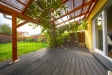 Přízemí domu tvoří obývací pokoj s krbem a velká kuchyně s veškerým vybavením vč. myčky, indukční desky a vinotéky. Z obývacího pokoje se francouzským oknem dostanete na terasu krytou pergolou a na zahradu se zahradním domkem na opačném konci. Z předsíně se dostanete na WC s bidetem a vedle dveří je praktická komora.