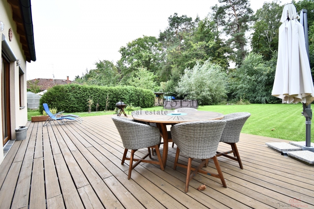 Rozlehlá zahrada je ideální pro odpočinek či grilování. Parkování je možné až pro šest vozů (s ohledem na manipulaci), příjezd zajišťuje nová asfaltová cesta.