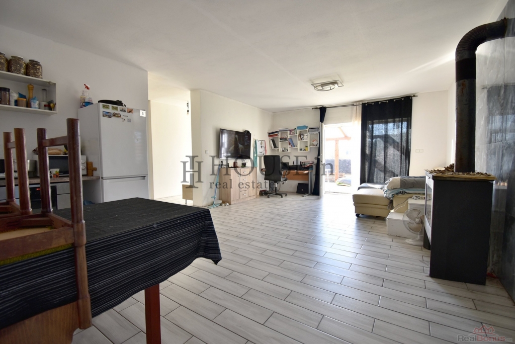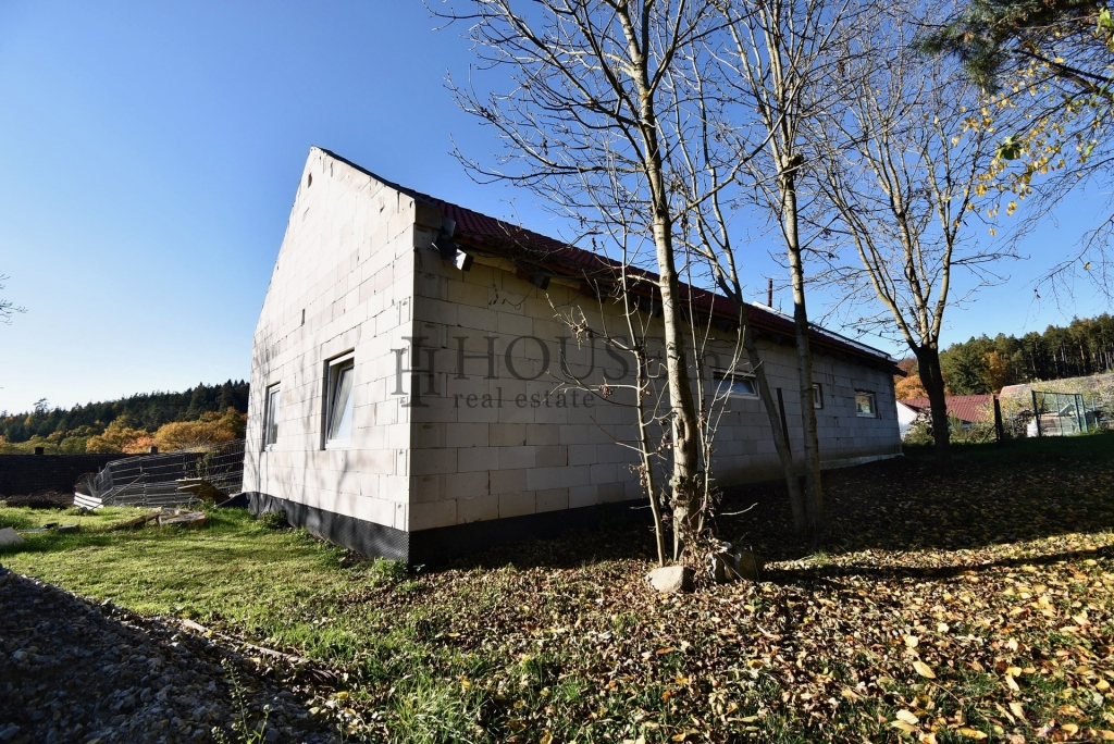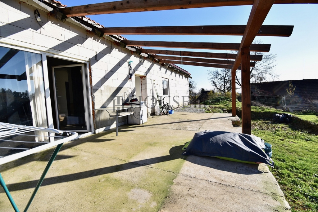 Součástí areálu je rodinný dům ? ?novostavba? s dispozicí 4+kk a zastavěnou plochou 115 m2. Dům je obyvatelný, ale nedokončený, s možností kolaudace jako vedlejší stavba. K domu náleží prostorná terasa s krásným výhledem na areál i okolní krajinu.