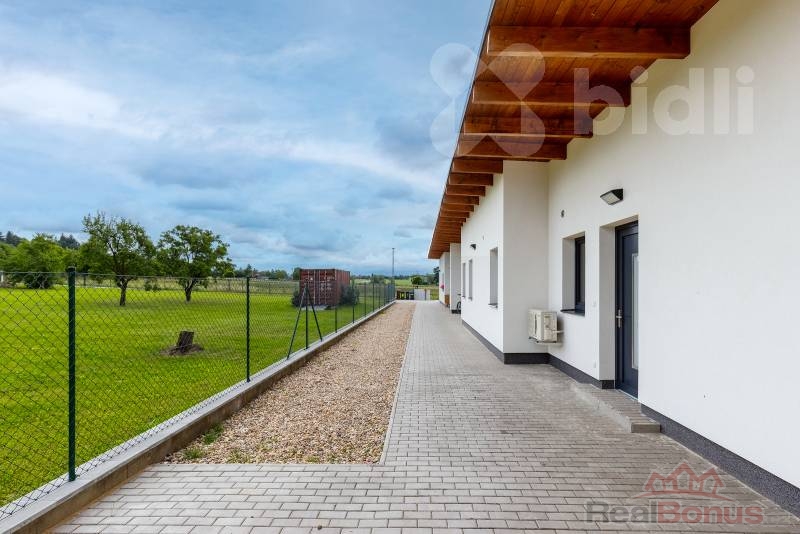 Byt disponuje vstupní chodbou, obývacím pokojem s kuchyňským koutem se vstupem na zahradu, pokojem, koupelnou s toaletou a technickou místností.