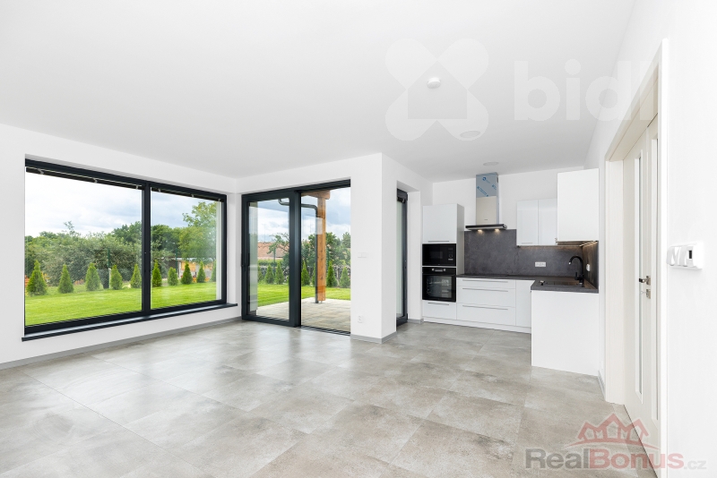 Byt disponuje vstupní chodbou, obývacím pokojem s kuchyňským koutem se vstupem na zahradu, pokojem, koupelnou s toaletou a technickou místností.