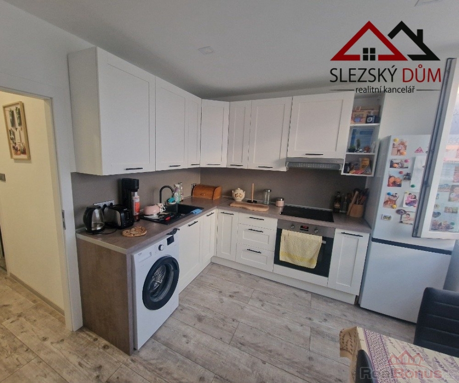 V kuchyni je moderní kuchyňská linka se zabudovanými spotřebiči. V celém bytě je položena plovoucí podlaha v jednotném konceptu. Nové jsou bezpečnostní vstupní dveře.