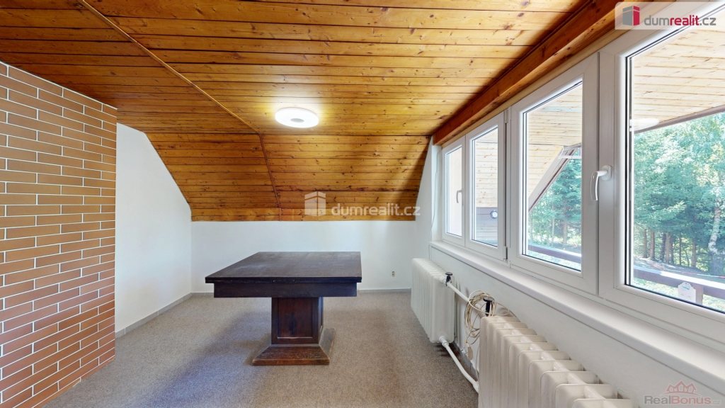 , exkluzivní prodej rekreační chaty v malebném prostředí Krušných hor Loučná pod Klínovcem. Nabízíme k prodeji prostornou, částečně modernizovanou rekreační chatu v osobním vlastnictví, která je vhodná i k celoročnímu obývání. Nemovitost se nachází v klidné části obce Loučná pod Klínovcem, v srdci Krušných hor, a poskytuje naprosté soukromí i báječné prostředí pro odpočinek či relaxaci. Chata je třípodlažní a prošla modernizací interiéru nová kuchyňská linka, koupelna se sprchovým koutem a závěsnou toaletou zajišťují komfortní zázemí. Celková plocha pozemku činí 695 m, na kterém se nachází vzrostlé stromy, pergola s venkovním posezením a dostatek prostoru pro relaxaci. Součástí prodeje je i další pozemek o rozloze 133 m, umístěný naproti chatě, který slouží jako parkovací plocha pro cca 7 vozidel což je velkou výhodou pro větší rodinu nebo přátele. Díky skvělé lokalitě je chata ideální nejen pro rekreaci, ale i pro trvalé bydlení či investici. Loučná pod Klínovcem patří mezi vyhledávané lokality Krušných hor s možností celoročního sportovního vyžití lyžařská střediska, turistické trasy i cyklostezky jsou na dosah. Objekt je napojený na veškeré inženýrské sítě. Vytápění zajišťuje elektrický kotel a ohřev vody zajišťuje elektrický bojler. Více informací na dotaz u makléře nabídky. Ev. číslo: 652223. Energetický štítek: G