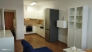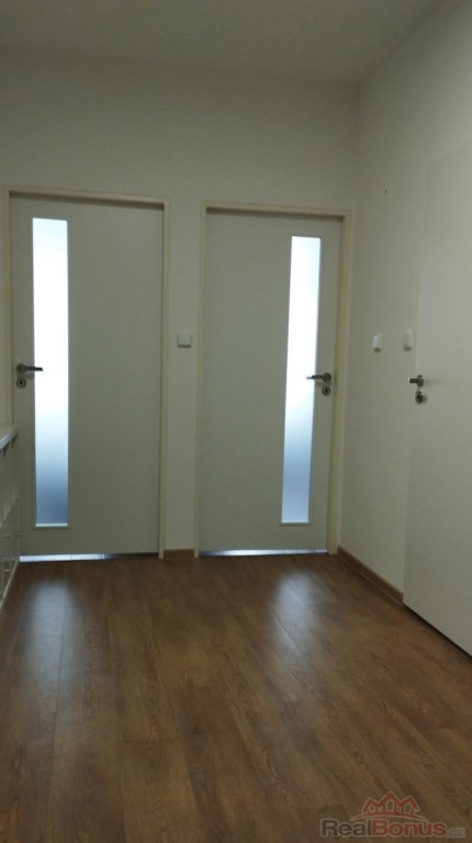 Dispozice: vstupní chodba s vestavnými skříněmi, koupelna s vanou a přípojkou na pračku, samostatné WC, samostatné vstupy do ložnice a obývacího pokoje s kuchyňským koutem s plně vybavenou kuchyňskou linkou: myčka, mikrovlnná trouba, elektrická trouba se sklokeramickou deskou, odsavač par, lednice s mrazákem. Z obývacího pokoje je vstup na balkon s výhledem na jižní stranu do zahrad RD.