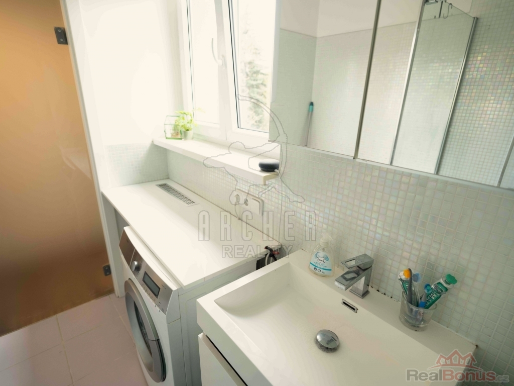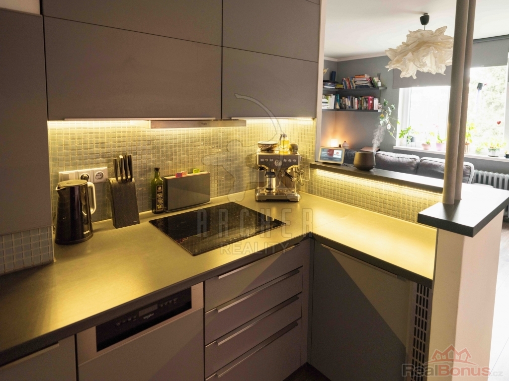 Nabízíme k prodeji byt 2+kk/S v DV, 54 m2, 2 m2 sklep, Praha 10 - Vinohrady, ul. Pod Rapidem. Moderně rekonstruovaný, plně vybavený byt s výtahem, se nachází na Vinohradech, blízko stanice metra Strašnická. Prostorné 2+kk nabízí obývací pokoj s plně vybavenou kuchyňskou linkou spotřebiči Whirlpool, posezením a jídelním stolem. Z velkých plastových oken je přes klidnou jednosměrnou ulici výhled do parku se vzrostlými stromy a hřišti. Přes předsíň vstoupíte do ložnice, orientované do zeleného vnitrobloku. Koupelna se sprchovým koutem, umyvadlem, toaletou a pračkou působí pozitivní světlostí a prostorností. Do předsíně je vstup bezpečnostními dveřmi. Nechybí elektronický vrátný s kamerou. Výtah je na patře, přístup téměř bezbariérový (2 schody). V cihlovém domě jsou nové rozvody elektřiny, plyn je na chodbách zazděný (v bytě se nepoužívá), jsou nové plastové stoupačky i odpad. V bytě je vše ve výborném stavu, je rovnou k nastěhování. Převod do OV je odhadován do dvou let, anuita je splacena.