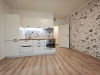 útulný obývací pokoj s plně vybavenou kuchyňskou linkou (sklokeramická varná deska, elektrická trouba s mikrovlnnou funkcí, digestoř, myčka, vestavěná lednice s mrazákem),