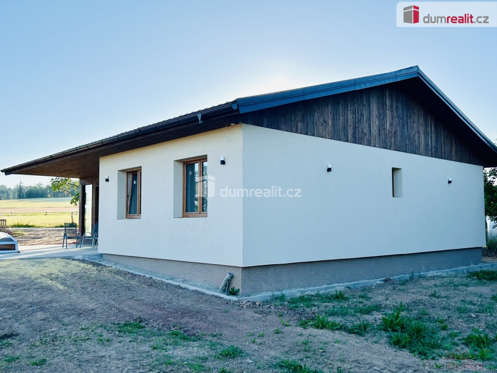 , Dumrealit.cz Vám zprostředkuje prodej novostavby rodinného domu v obci Zvěstov, část obce Vlastišov o dispozici 4kk a užitné ploše 120 m. Spádová obec Zvěstov je cca 2 km a je zde obchod smíšeného zboží. Novostavba se nachází na vlastním pozemku o výměře 1407 m na okraji obce.K výstavbě bylo použito zdivo Wieneberger 30 cm + 10 cm zateplení pomocí polystyrenu. Střecha - krov - sbíjený vazník, plechová střešní krytina Satjam. Stropy sádrokartonové, zateplené minerální foukanou izolací 30 cm. Okna od české společnosti Jis , trojsklo, masivní dřevěná okna rovněž trojsklo s bezpečnostní fólií. Voda do domu přivedena z vlastní vrtané studny hluboké 50 m a vydatností 300 l/ hod, splašková voda svedena do septiku. Vytápění řešeno tepelným čerpadlem s rozvodem do podlahy v kombinaci s krbovou vložkou. U domu venkovní terasa o výměře 25 m na níž navazuje přístup k bazénu o rozměrech 6x3 m se zastřešením, jehož příslušenstvím je noční osvětlení. Terasa a pochozí část kolem bazénu vydlážděna zámkovou dlažbou. Na RD bude namontován kamerový systém s dálkovým přístupem přes aplikaci a elektronické zabezpečovací zařízení. Pozemek je oplocený s přístupem z obecní komunikace.