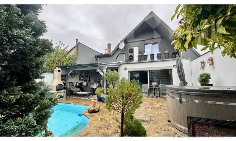 Dům stojí na pozemku o výměře 549m2, z toho zastavěná plocha činí 202m2 (dům 162m2 a garáž 40m2) a zbylých 347m2 slouží k vaší čiré relaxaci. K té vám dopomůže udržovaná zahrada navržena zahradním architektem, vyhřívaný bazén a krytá zimní zahrada s grilem.