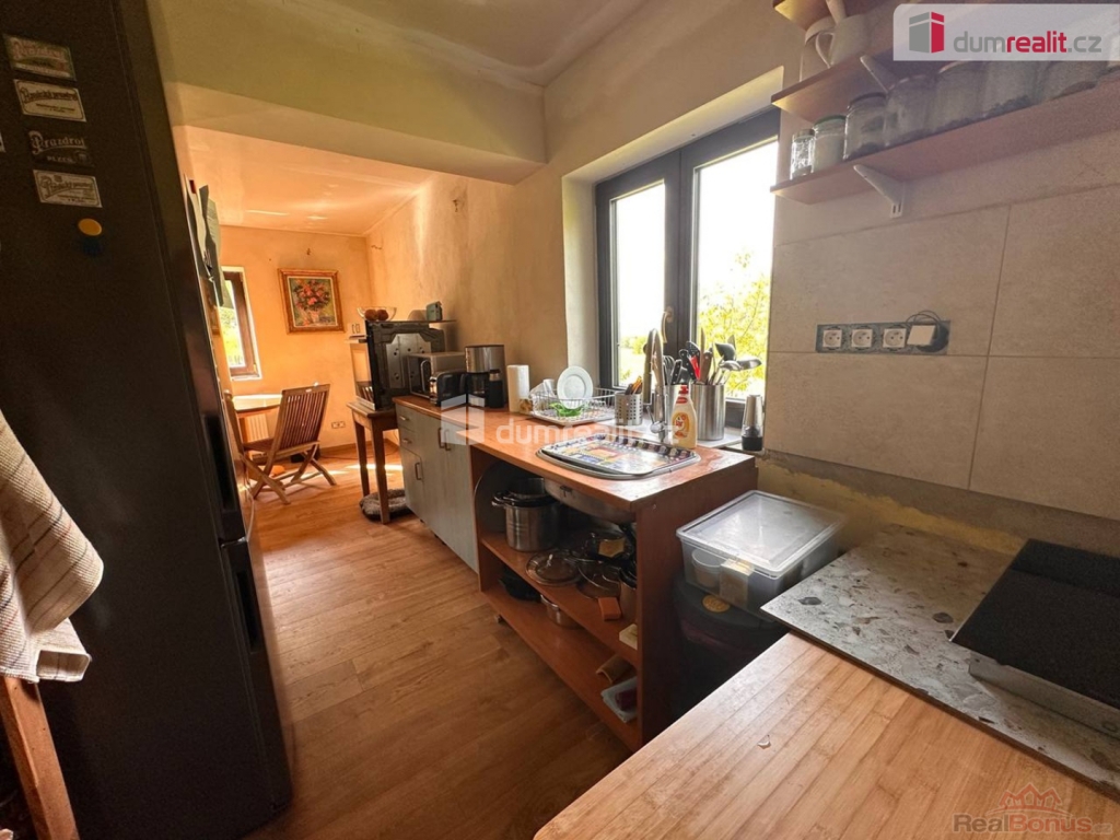 Cena včetně právního servisu a provize RK., Dumrealit.cz Vám zprostředkuje prodej krásného rodinného domu 5+kk s užitnou plochou 120 m po rozsáhlé rekonstrukci s velkou zahradou o rozloze 839 m v Touchořinách, Lovečkovicích.
