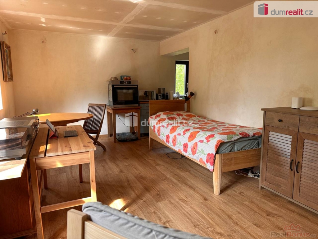 Součástí nabídky je krásná a udržovaná zahrada osázená stromy a keři, která poskytuje dostatek prostoru pro relaxaci, dětské hry i zahradničení. Na zahradě se nachází pergola pro příjemné letní posezení. Okolní příroda a výhled do lesů dodávají domu jedinečnou atmosféru klidu a pohody. Dům má evidenční číslo, ale parcela je dle územního plánu určená k výstavbě rodinných domů.