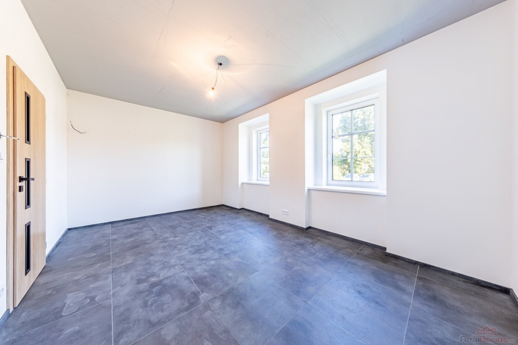 Bytová jednotka se nachází v 1.NP historického objektu v centru obce, který prochází rekonstrukcí. Na bytové jednotce probíhají poslední drobné práce, k nastěhování bude 1.11.2025