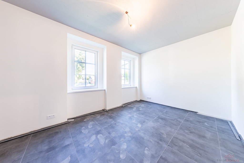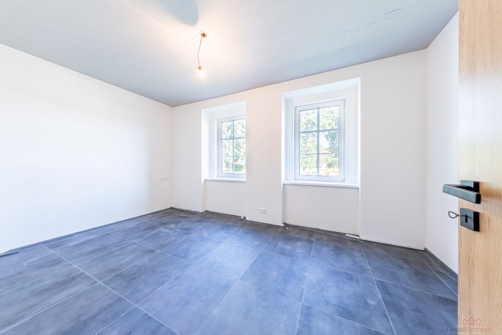 Bytová jednotka se nachází v 1.NP historického objektu v centru obce, který prochází rekonstrukcí. Na bytové jednotce probíhají poslední drobné práce, k nastěhování bude 1.11.2025