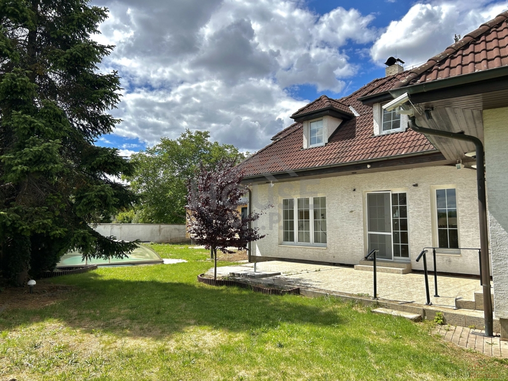 Exteriér a lokalita: Udržovaná zahrada s bazénem a plným soukromím. Parkování na pozemku. Klidná ulice s výhledem na pole ? ideální pro rodinné bydlení.