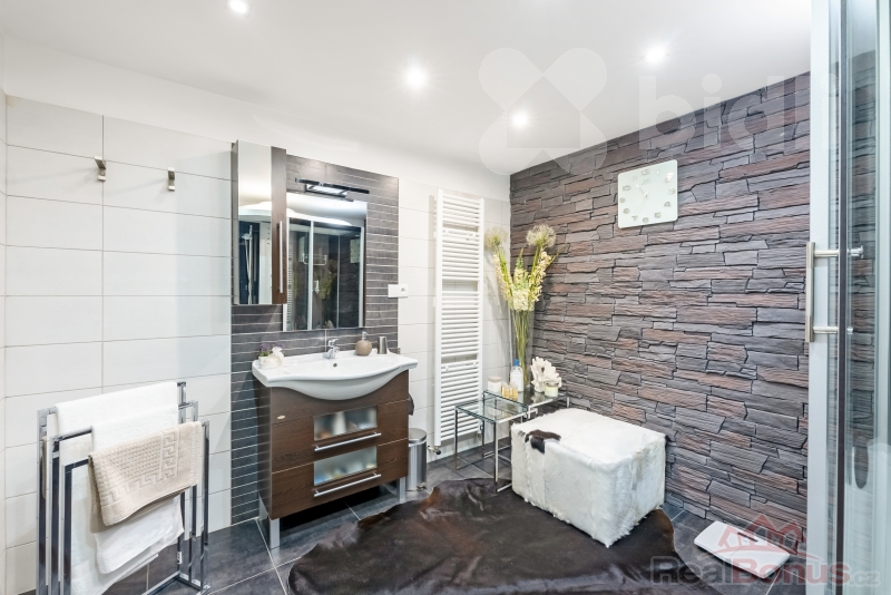 Dům prošel kompletní rekonstrukcí v roce 2013 a letos byl udělán nový nátěr fasády a obložení. Za zmínku stojí, že vytápění zajišťuje tepelné čerpadlo, o elektrickou energii se stará FVE o výkonu 10kw s bateriemi, hliníková okna, spodní patro disponuje klimatizací, podlahové vytápění ve spodní koupelně, interkom a zajisté potěší i prostorná lodžie o výměře 9m2 s výhledem na zahradu.