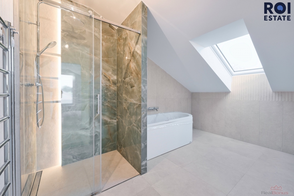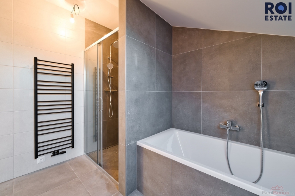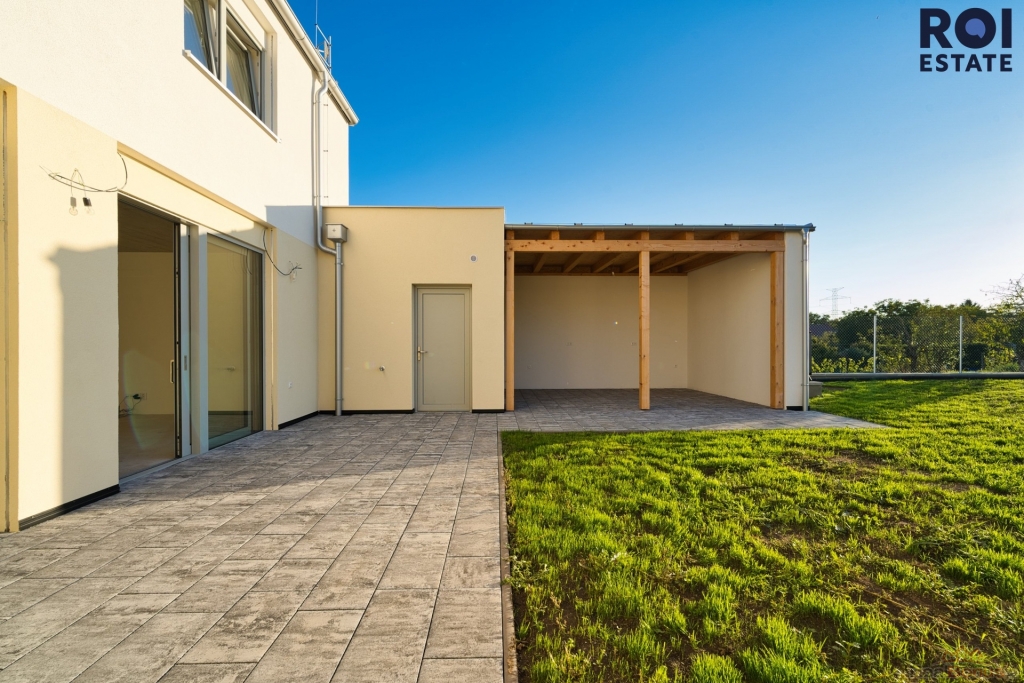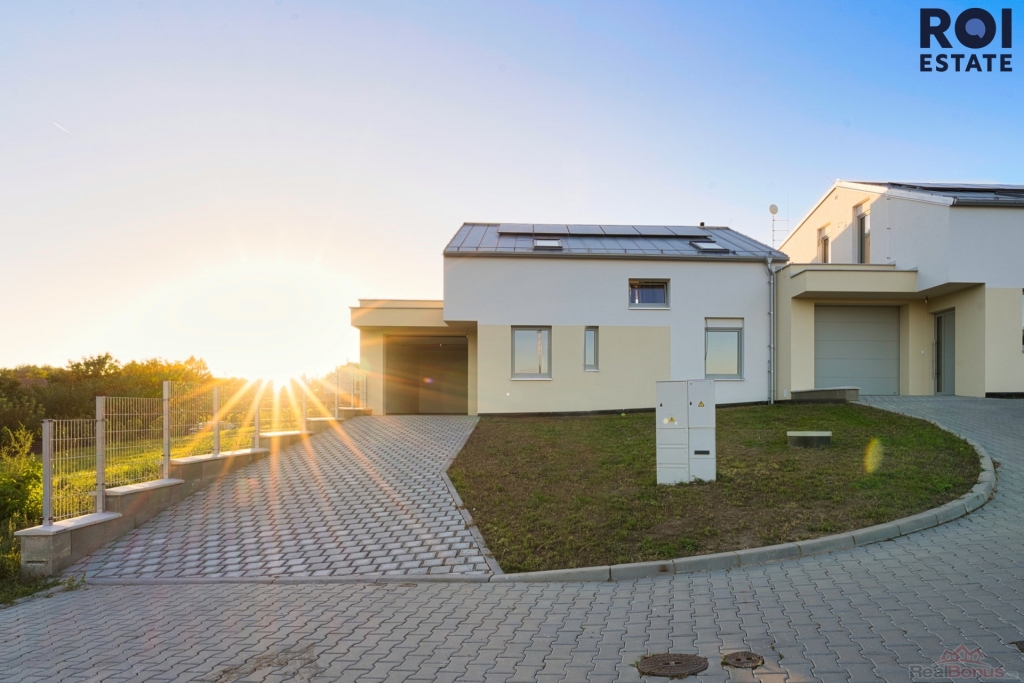 Rodinné domy 5+kk, které zde ve spolupráci s architektem vznikají, nabízí komfortních 167m2 obytné plochy (včetně 26m2 velké garáže). Technickou výhodou domů mimo prakticky řešenou dispozici je tepelné čerpadlo, podlahové vytápění a také propojení s fotovoltaikou. Promyšlené řešení domu podtrhují technické místnosti jako je prádelna s kotelnou, sklad pro zahradu, ale i 3 WC, kdy jedno je přístupné přímo ze zastřešené terasy domu.