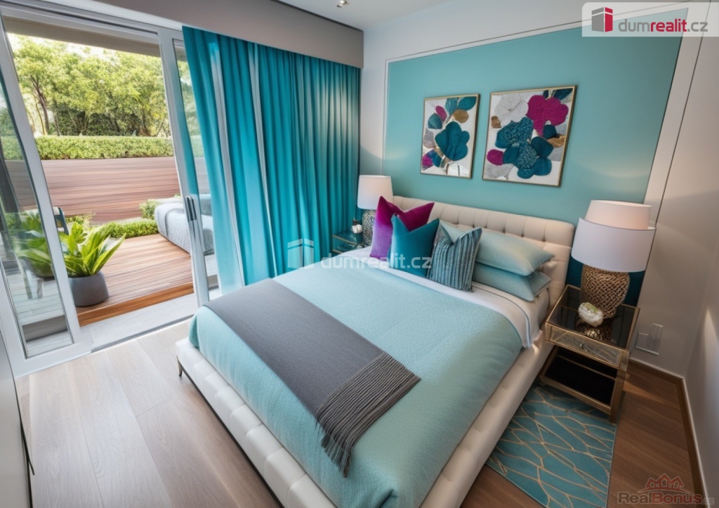 Z ložnice vás potěší francouzské okno s přímým vstupem na zahradu, která nabízí dostatek prostoru pro odpočinek, grilování nebo rodinné chvíle na čerstvém vzduchu.