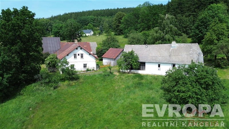 Jedná se o prodej dvou chalup s přilehlou zemědělskou stavbou a stodolou. Hlavní užitný prostor nalezneme v jedné částečně zrekonstruované chalupě, která je k plnohodnotnému užívání. Ostatní stavení jsou vhodné spíše k rekonstrukci.