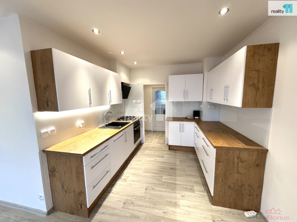 V bytě, o velikosti 68.5 m, je právě dokončená rekonstrukce. Nová koupelna se sprchovým koutem, toaleta po rekonstrukci, nové podlahy, nová výmalba, kuchyňská linka cca 2 roky stará - moderní a praktická . Má ideální dispozici, kdy ze vstupní chodby do tvaru L, vedou samostatné dveře do obou ložnic (cca 8.5 m a 11.5 m), přičemž u větší ložnice je slunná, zasklená lodžie. Dále velký obývací pokoj s kuchyňským koutem (cca 32 m). Kuchyňská linka s myčkou, plynovou varnou deskou, troubou, digestoří. Lednice ani pračka v bytě není. K uložením věcí Vám skvěle poslouží praktická šatna, samostatná komora naproti bytu a také sklep v suterénu domu.