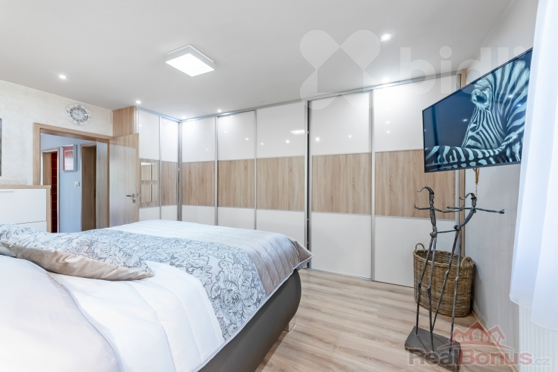 Dům prošel kompletní rekonstrukcí v roce 2013 a letos byl udělán nový nátěr fasády a obložení. Za zmínku stojí, že vytápění zajišťuje tepelné čerpadlo, o elektrickou energii se stará FVE o výkonu 10kw s bateriemi, hliníková okna, spodní patro disponuje klimatizací, podlahové vytápění ve spodní koupelně, interkom a zajisté potěší i prostorná lodžie o výměře 9m2 s výhledem na zahradu.