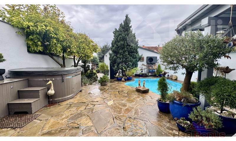 Dům stojí na pozemku o výměře 549m2, z toho zastavěná plocha činí 202m2 (dům 162m2 a garáž 40m2) a zbylých 347m2 slouží k vaší čiré relaxaci. K té vám dopomůže udržovaná zahrada navržena zahradním architektem, vyhřívaný bazén a krytá zimní zahrada s grilem.