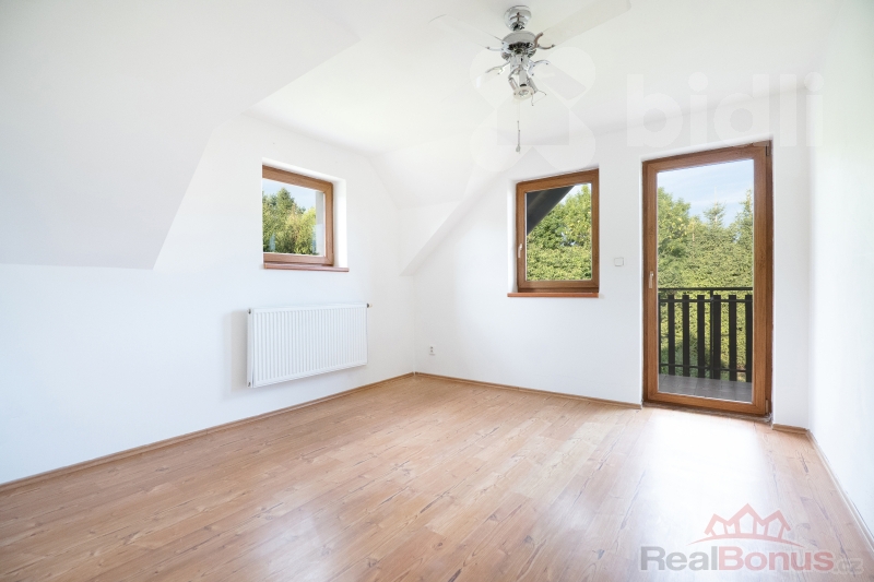 2 ložnice mají přímý vstup na balkón v obytném podkroví, ze kterého uvidíte rovnou do upravené zahrady