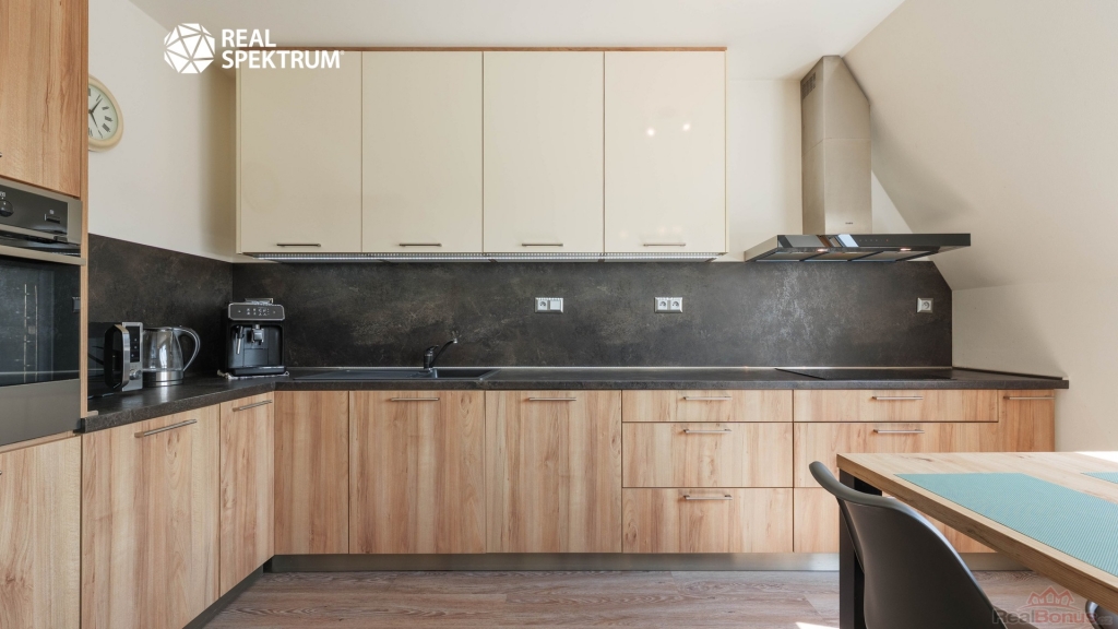 Kuchyňská linka je vybavena sklokeramickou varnou deskou, digestoří, myčkou, mikrovlnnou troubou a dřezem s baterií. Příjemným bonusem je infrasauna pro dvě osoby a klimatizace, která zajistí komfort i v horkých dnech. Topení zajišťuje vlastní plynový kotel, díky kvalitní izolaci jsou provozní náklady velmi nízké.