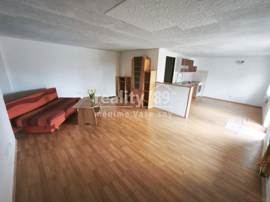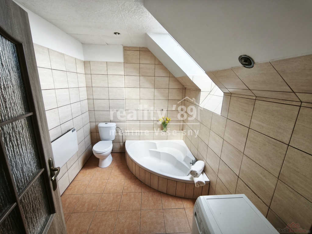 V prvním patře se nachází byt 4+kk o výměře 85 m2, s koupelnou s rohovou vanou a toaletou.