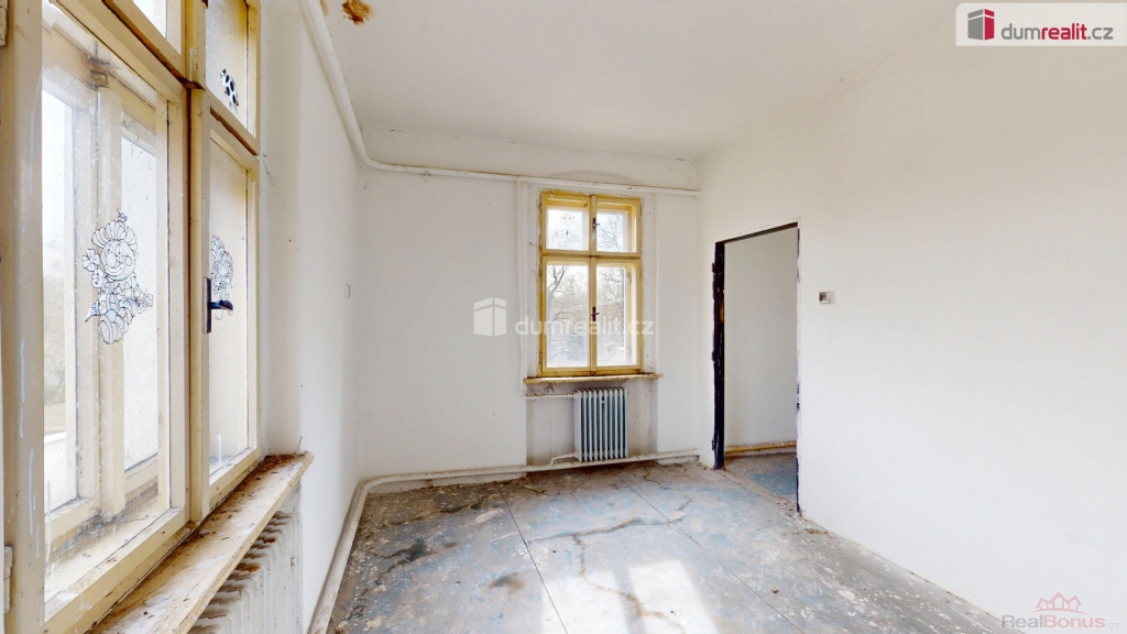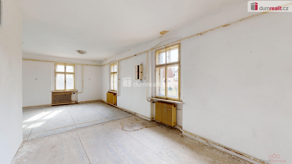 , exkluzivní prodej rodinného domu v Hořeticích u Žíželic. Dům v minulosti sloužil jako obecní úřad a je určen ke kompletní rekonstrukci, dle přání a představ nového majitele. Leží na pozemku o rozloze 388 m a nabízí možnost vybudování dvou bytových jednotek. K využití jsou také podkrovní prostory. Dům má momentálně tři vstupy. Přízemní prostor lze využít i pro komerční účely (dříve potraviny se skladem). V přízemí se nachází tři místnosti, chodba s kotlem na tuhá paliva a samostatné WC. Dalšími samostatnými vstupními dveřmi se dostaneme do prvního patra, kde se nachází chodba, koupelna, samostatná toaleta a dalších pět místností. V celém domě jsou původní dřevěná okna a radiátory. Před domem se nachází autobusová zastávka a dětské hřiště. Parkování je možné na pozemku před domem. Dům je podsklepen. Dojezdová dostupnost Žatec 10 km, Chomutov 15 km, Most 20 km, Louny 25 km. Financování nemovitosti zajištěno. Více informací na dotaz u makléře nabídky. Ev. číslo: 650700. Energetický štítek: G