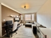 Z předsíně je vstup do všech místností bytu. Je vybavena věšákem, botníkem a velikou skříní s posuvnými dveřmi. Z předsíně vstoupíme do prosvětleného obývacího pokoje se sedací soupravou ve tvaru L. Naproti ní jsou skříňky a prostor pro televizi. Vlevo je pracovní kout s psacím stolem. Na obývací pokoj navazuje kuchyňský kout s kuchyňskou linkou se samostatnými spotřebiči, elektrickým sporákem se sklokeramickou deskou a horkovzdušnou troubou, lednicí s mrazákem a pračkou. Je zde také jídelní stůl.