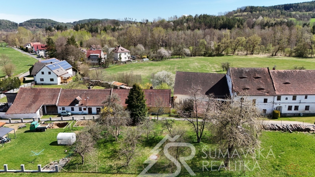 Tato nemovitost je dokonalou volbou pro všechny, kteří hledají projekt na klidném místě obklopeném krásnou přírodou. Díky své poloze v obci Dobršín, která leží nedaleko Sušice, kombinuje snadnou dostupnost městské infrastruktury s výhodami venkovského bydlení.