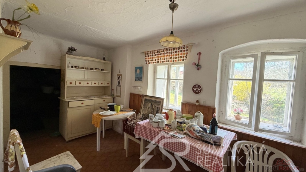 Popis: rodinný dům o zastavěné ploše 283 m, jehož vnitřní dispozice zahrnují vstupní chodbu, dvě obytné místnosti, kuchyň a sklep. Tento dům je vhodný pro rekonstrukci podle vašich představ a může sloužit jako útulné bydlení či chalupa. K domu náleží i malá zahrádka, která nabízí výhled na romantický Mlýnský potok protékající přímo u pozemku, což vytváří nezaměnitelnou atmosféru klidu a pohody.